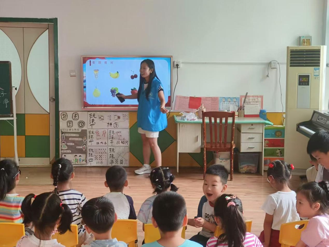 趣味课堂启心智:化身“水果魔法师”的志愿者,借助多媒体设备开展生动有趣的认知课程,孩子们目光专注,踊跃参与,课堂气氛热烈。