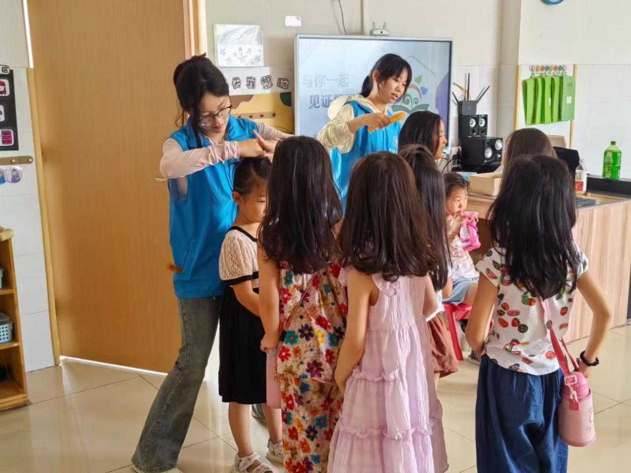 温情关怀暖人心:志愿者化身“美丽使者”,细心为小女孩们梳理发辫,轻柔的动作中满含耐心与关爱,将日常片段化作温馨的成长记忆。