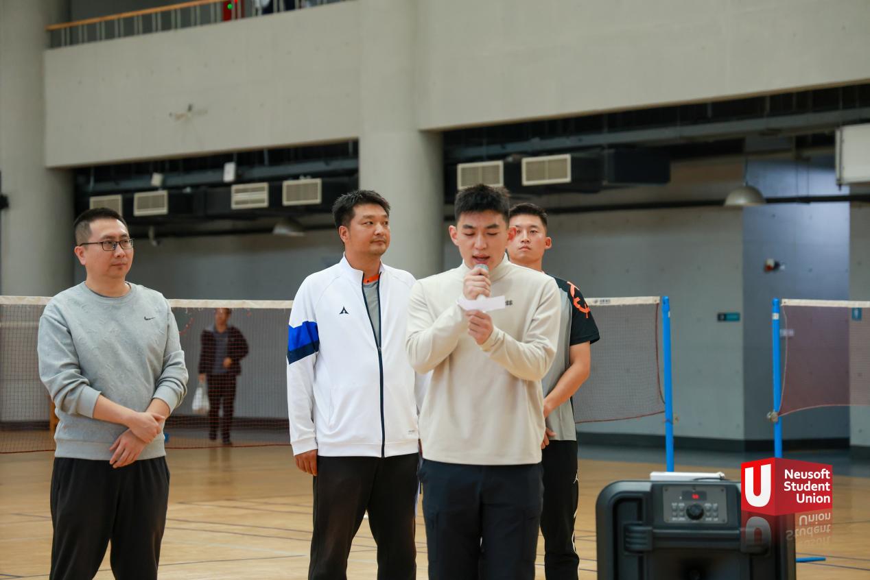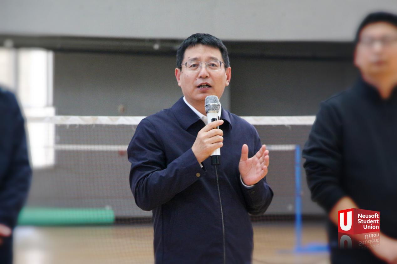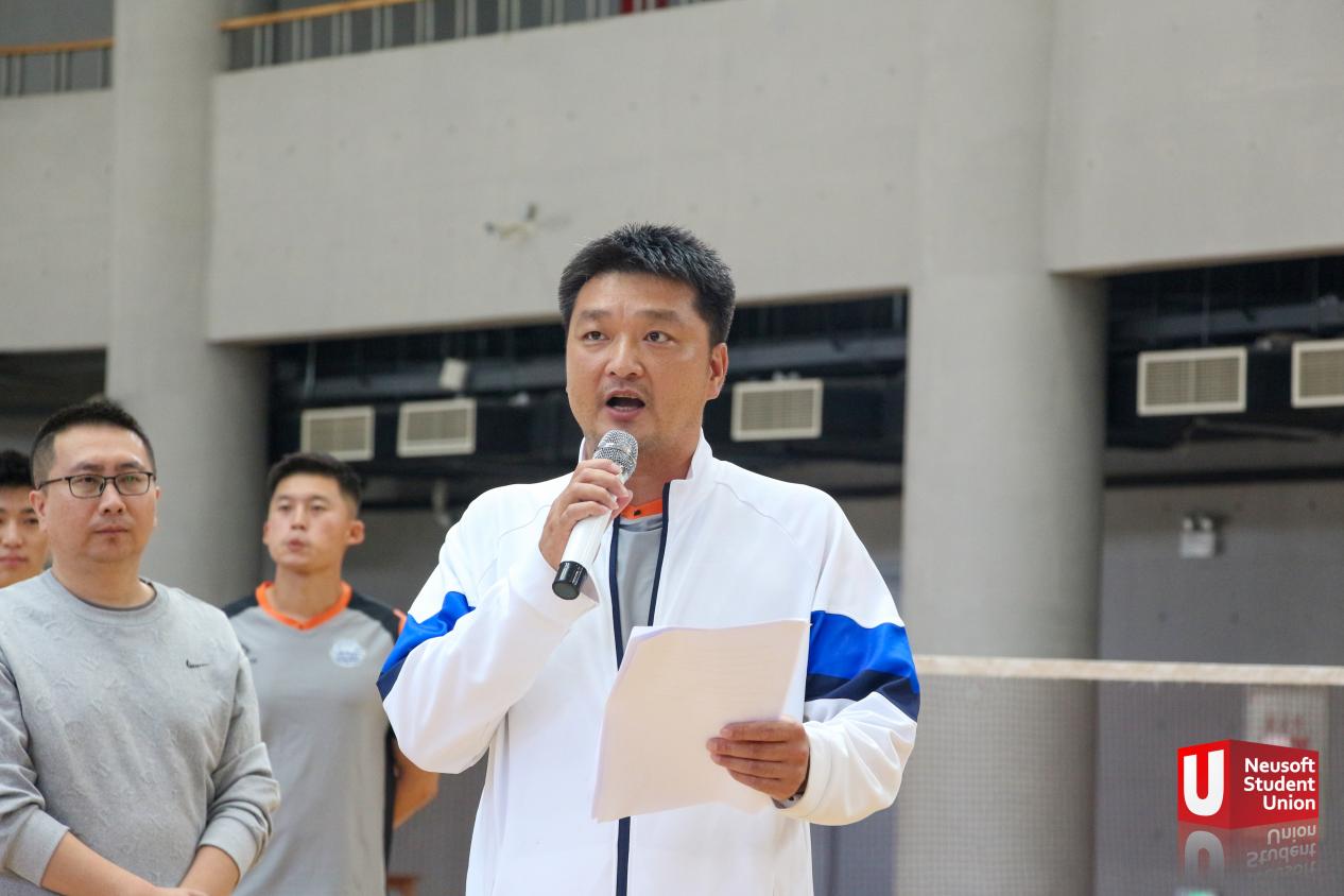 张晋在开幕式上致辞。他表示,体育是教育的重要组成部分,它锤炼的不仅是强健的体魄,更是坚韧不拔的意志、团结协作的精神和遵守规则的品格。篮球联赛是我校践行“五育并举”、推动阳光体育运动的生动实践,希望广大学生通过参与篮球联赛,能真正领略到篮球运动的魅力,感受到体育带来的快乐。同时,张晋也对全体参赛队员提出三点希望:发扬“友谊第一,比赛第二”的体育精神,尊重对手,尊重裁判,赛出风格,赛出水平;展现团结协作、顽强拼搏的团队风貌,将球队凝聚成一个坚强的集体;遵守规则,文明参赛,服从裁判判罚,保护自身和对手安全,展现东软学子良好的精神风貌和道德风尚。最后,张晋预祝本次篮球联赛各队取得优异成绩。