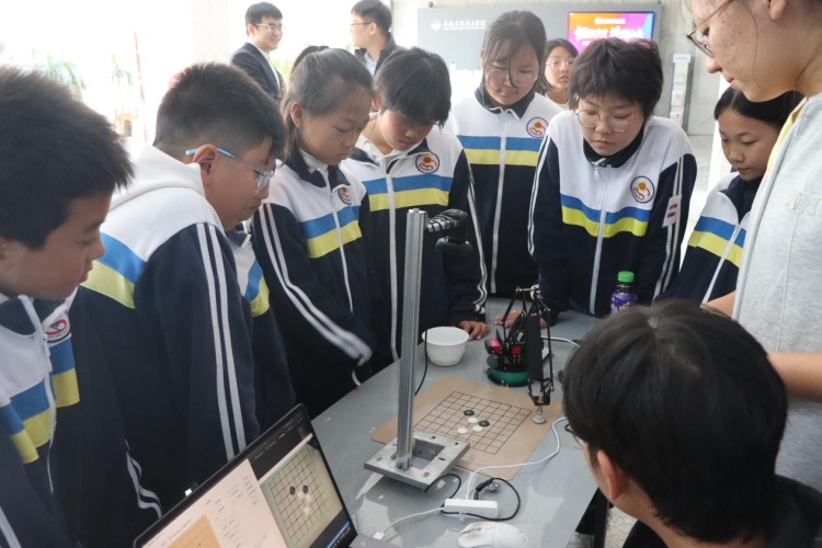 活动伊始,山屏小学的师生们在学院教师党员、志愿者的带领下,来到软件学院,开展“人机对弈”活动,山屏小学学生与搭载了先进算法的AI进行五子棋对抗,在博弈中直观感受人工智能的智能决策能力。